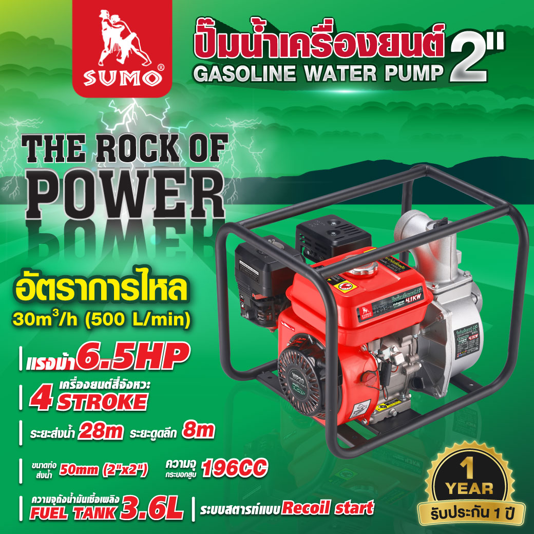 คุณกำลังรีวิว:ปั๊มน้ำเครื่องยนต์ 2 นิ้ว รุ่น WP20 SUMO