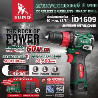 สว่านกระแทกไร้สาย ไร้แปรงถ่าน รุ่น CD009 SUMO