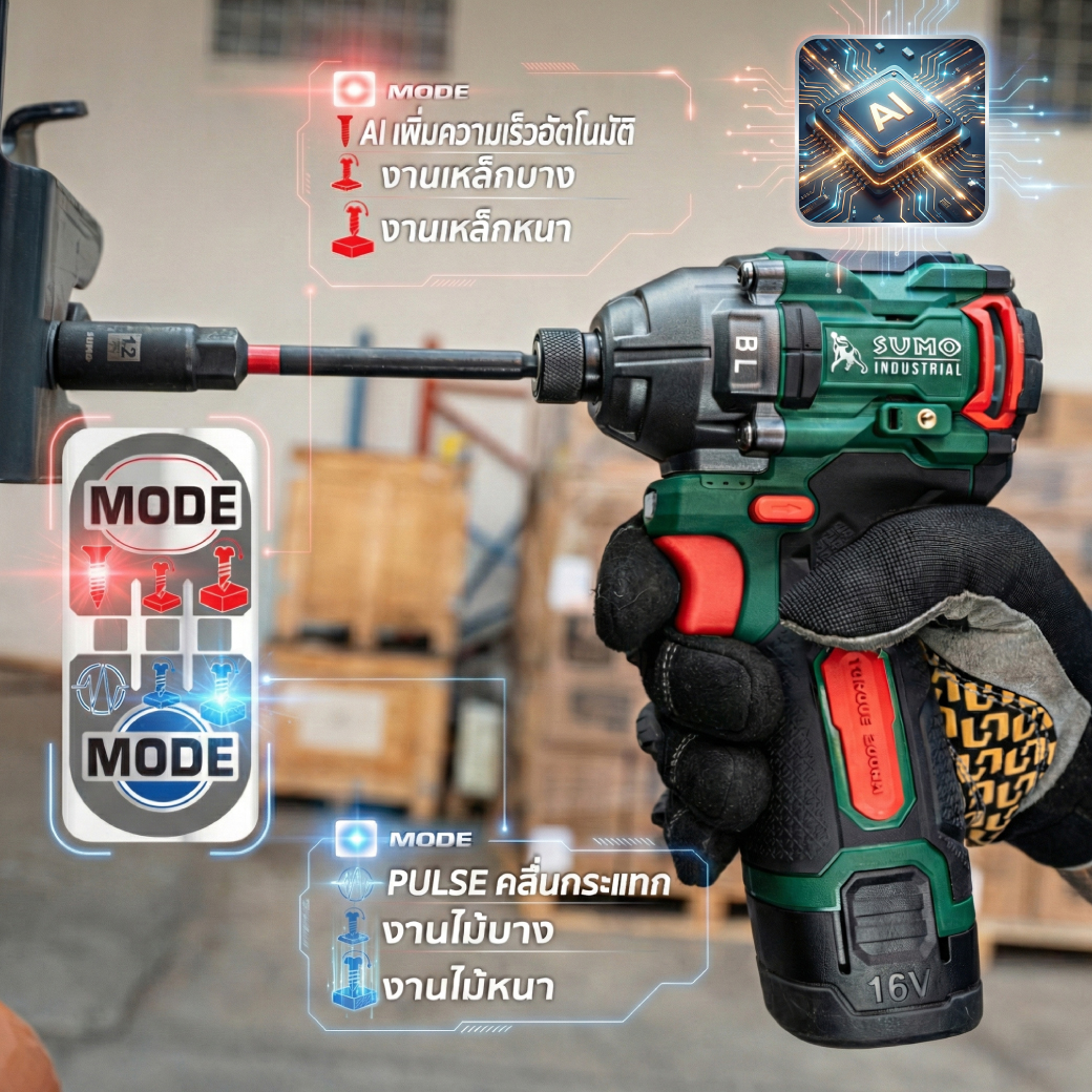 Ideal for fastening nuts and screws that require high torque, such as woodworking, light metal, and heavy metal tasks, as well as loosening stuck or rusted bolts. It also features Pulse Mode, which helps control torque and reduce kickback, making it perfect for assembling furniture or various DIY projects. Suitable for both DIY enthusiasts and professional craftsmen.