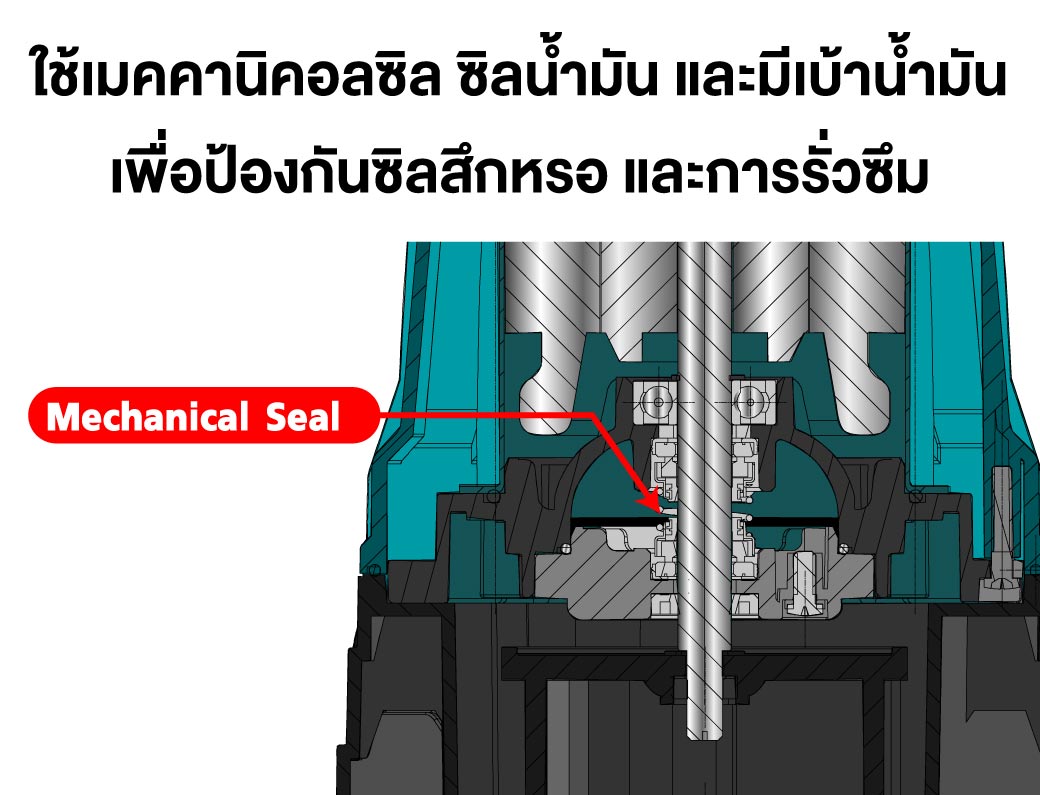 • ใช้เมคคานิคอลซิล ซิลน้ำมัน และมีเบ้าน้ำมัน เพื่อป้องกันซิลสึกหรอ และการรั่วซึม
