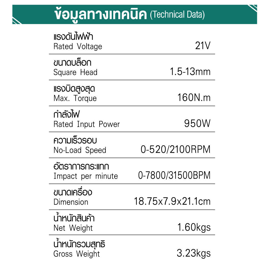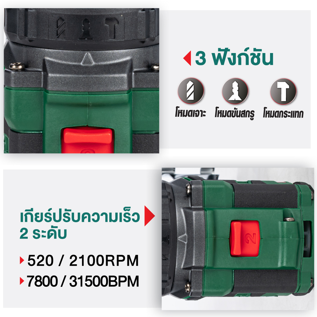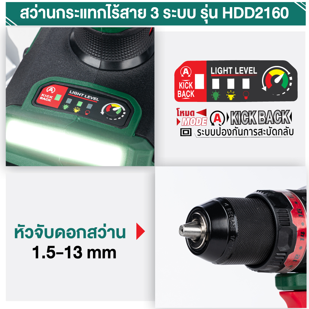 สว่านกระแทกไร้สาย 3 ระบบ 21 V 2.0Ah รุ่น HDD2160 DUTY CYCLE 100% 160 Nm Heavyweight 3in1 เจาะ ขัน กระแทก