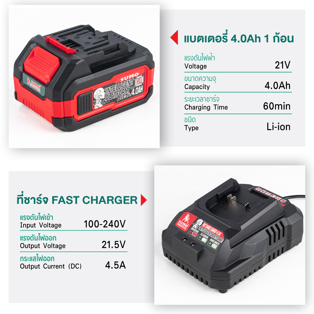 • ระบบรองรับการทำงานร่วมกับแบตเตอรี่ MCU ของSUMO เท่านั้น