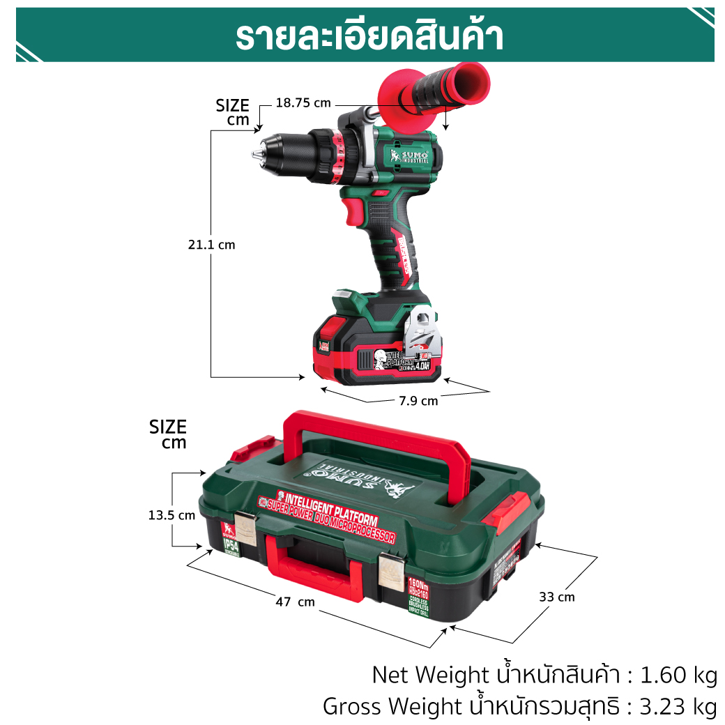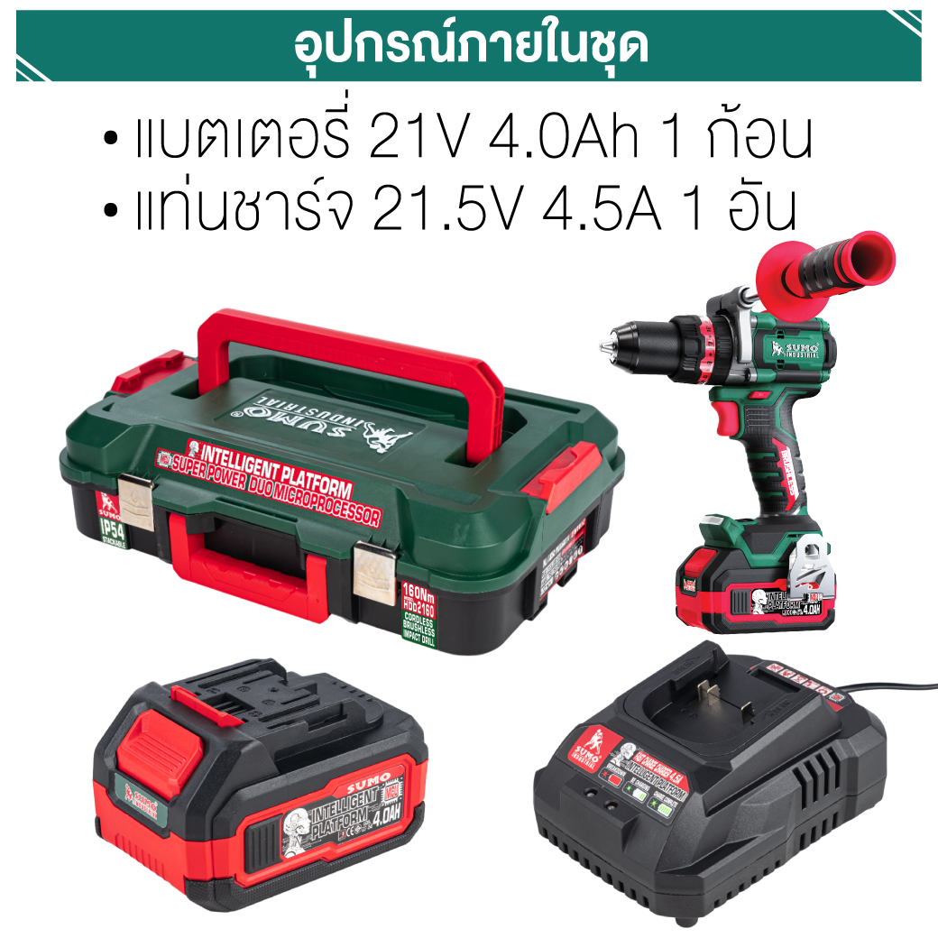 สว่านกระแทกไร้สาย ไร้แปรงถ่าน รุ่น HDD2160 SUMO