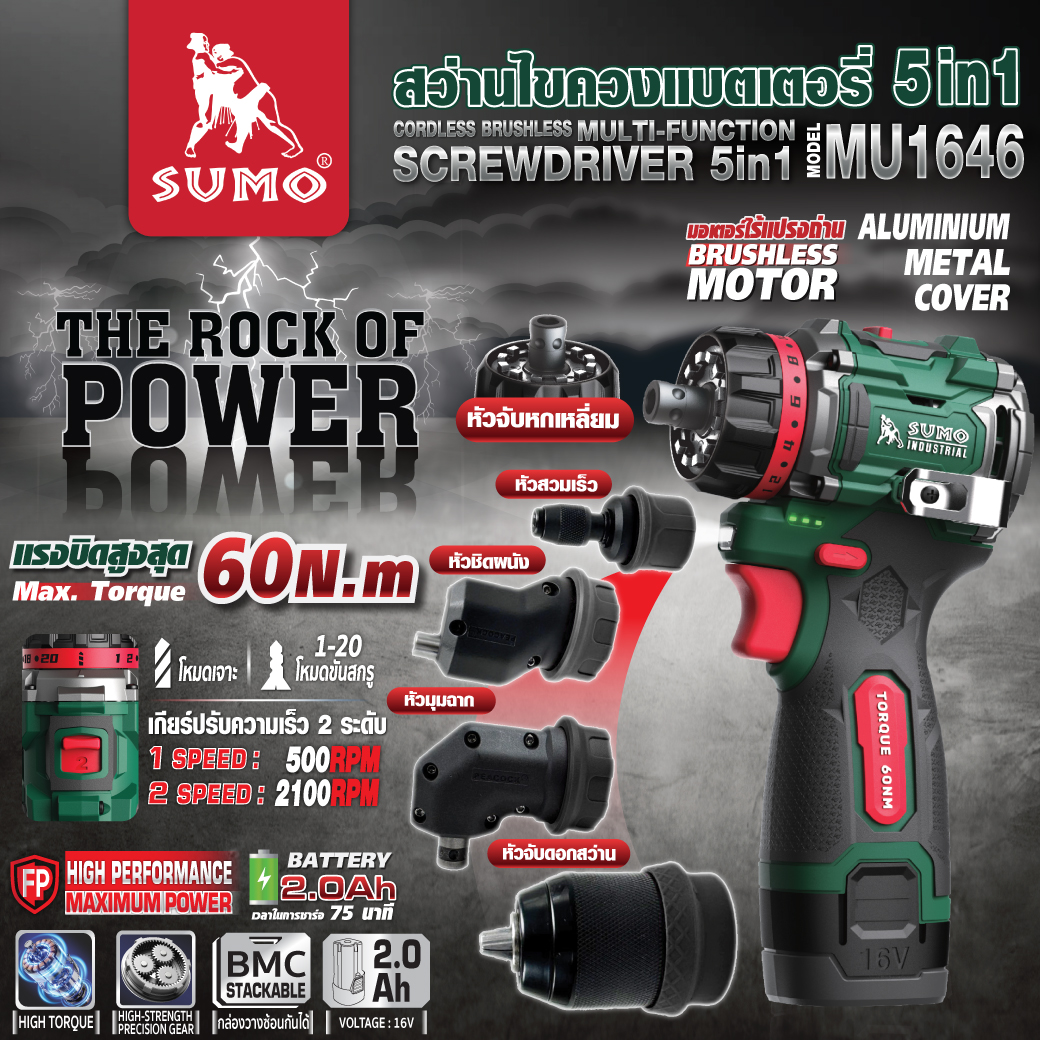 CORDLESS BRUSHLESS MUTI-FUNCTION SCREWDRIVER 5IN1 MODEL MU1646 SUMO สว่านไขควงแบตเตอรี่ สว่านไขควงไร้สาย 5IN1 รุ่น MU1646 SUMO CORDLESS BRUSHLESS MUTI-FUNCTION SCREWDRIVER 5IN1 MODEL MU1646 SUMO