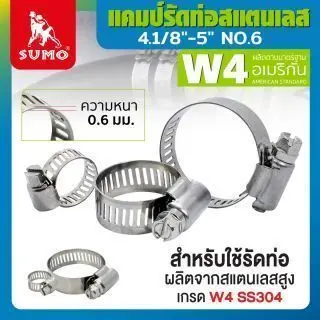 • เข็มขัดรัดท่อ แคมป์รัดท่อ W4 ผลิตจากสแตนเลสคุณภาพสูงทั้งชิ้นเกรด W4 SS304 ผ่าร่องสไตล์อเมริกัน