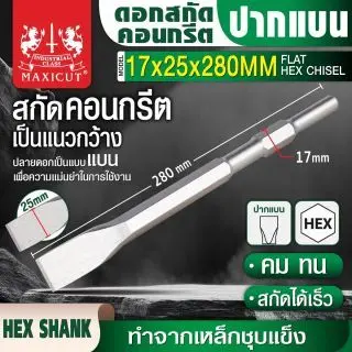 ดอกสกัดคอนกรีต ปากแหลม ก้านหกเหลี่ยม 17x450mm MAXICUT