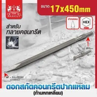 ดอกสกัดคอนกรีต ปากแบน ก้านหกเหลี่ยม 17x25x450mm MAXICUT