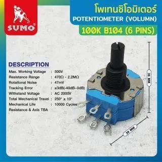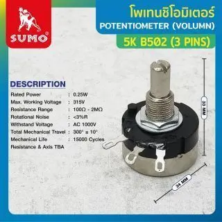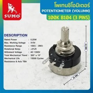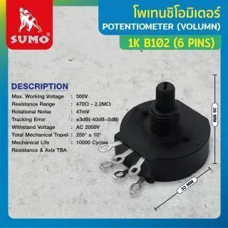 รายละเอียด Potentiometer (Volume) 1K B102 (3 pins)