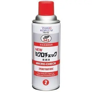 • พ่นน้ำยาแทรกซึมสีแดง กระป๋องสีแดง (FP-S) บริเวณแนวเชื่อม ให้ทั่วพื้นผิวที่ต้องการทดสอบโดยทิ้งไว้ 5-20 นาที จนแห้งสนิท (หากสถานที่ทดสอบมีความหนาวเย็น สามารถเพิ่มระยะเวลาได้