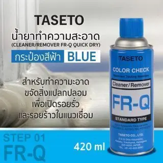 • พ่นสเปรย์น้ำยาทำความสะอาด กระป๋องสีน้ำเงิน (FR-Q) หรือ สเปรย์ขจัดคราบน้ำมัน SUMO (Brake & Parts Cleaner Sumo) ฉีดลงบนผ้าสะอาดหมาดๆ และนำไปเช็ดบริเวณด้านบนพื้นผิวแนวเชื่อม เพื่อกำจัดน้ำยาสีแดงส่วนเกินออก จนไม่เห็นสีแดง