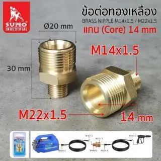 Brass Nipple M14x1.5/M22x1.5 core 15 mm อะไหล่อุปกรณ์ครื่องอัดฉีด