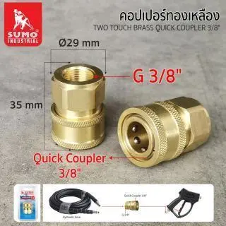 Buy คอปเปอร์ทองเหลือง 3/8"/M22x1.5 คอปเปอร์ทองเหลือง 3/8"/M22x1.5 เป็นฟังก์ชั่นเสริม เปลี่ยนข้อต่อเกลียว เป็นปลั๊กสวมเร็วเพื่อความสะดวกในการใช้งาน คอปเปอร์ (Quick coupler) 3/8" ข้อต่อทางออกตัวผู้ เกลียวนอก (screw connector outlet) M22x1.5 แรงดันสูงสุด (Max. Pressure) 350bar อุณหภูมิ สูงสุด (Max. temp) 60°C