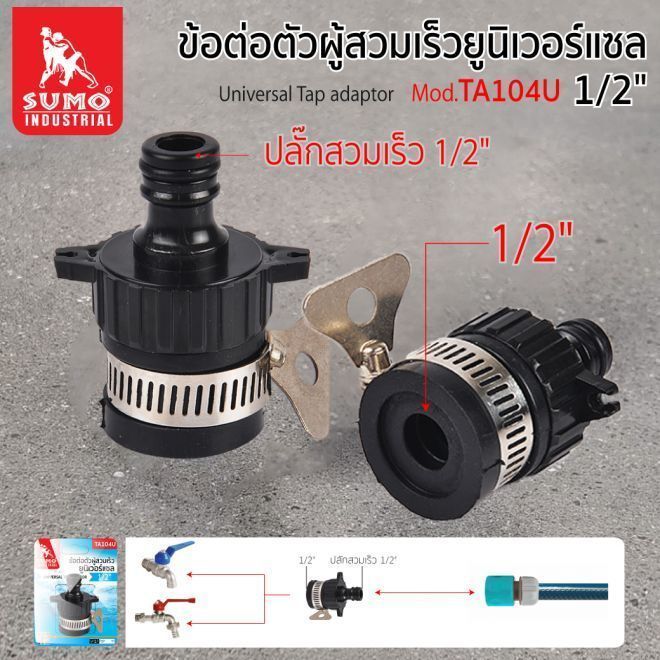 Buy ข้อต่อตัวผู้สวมเร็วเกลียวใน 3/4"-1/2" รุ่น TA164 SUMO ข้อต่อตัวผู้ ข้อต่อตัวผู้สวมเร็วเกลียวใน ผลิตจากพลาสติก ABS+PP แข็งแรง ทนทาน ข้อต่อตัวผู้สวมเร็วเกลียวใน ใช้เชื่อมต่อกับก๊อกน้ำที่มีเกลียวขนาด 1/2 นิ้ว และ 3/4 นิ้ว เช่น ก๊อกน้ำเครื่องซักผ้า