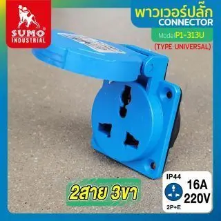 คุณกำลังรีวิว:พาวเวอร์ปลั๊ก 3สาย 3ขา 16A รุ่น P1-0123TH (ตัวผู้) SUMO