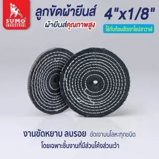 • งานขัดหยาบ ลบรอย ขัดเงาบนโลหะทุกชนิด ใช้คู่กับก้อนยาขัดและสามารถใช้กับชิ้นงานได้ทุกประเภท เช่น สเตนเลส โดยเฉพาะชิ้นงานที่มีส่วนโค้งส่วนเว้า ลูกขัดผ้ายีนส์ เป็นผ้ายีนส์ที่มีคุณภาพสูง และเหนียว