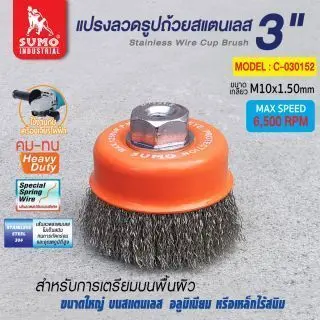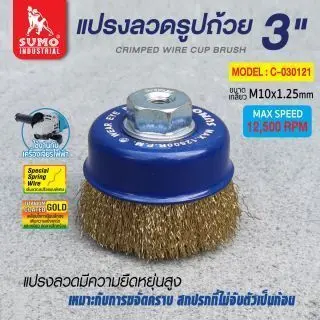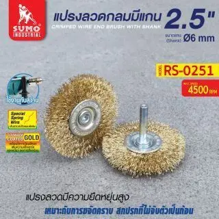 คุณกำลังรีวิว:แปรงลวดพู่กันสำหรับงานลม 1”x6mm รุ่น ES-0101P SUMO