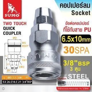 คอปเปอร์ใช้กับสายลม PU 6.5x10mm. (30 SPT) 3/8" BSP 3หุน
