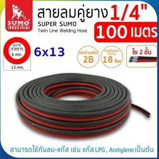 สายลมคู่ยาง 1/4"x100M 1 ชั้น (ดำ-แดง) SUMO สำหรับงานเชื่อม งานตัด