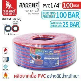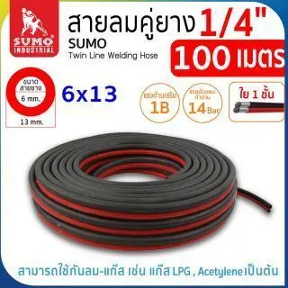 สายลมคู่ยาง 1/4"x100M 2 ชั้น SUMO (ดำ-แดง)