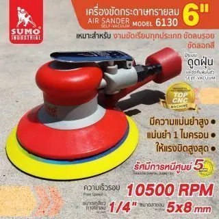 • เครื่องขัดกระดาษทรายลม รุ่น 5130 ยี่ห้อ SUMO เป็นเครื่องขัดกระดาษทรายแบบกลม ใช้กับ แป้นรองเครื่องขัดกระดาษทราย และ กระดาษทรายกลมหนามเตย