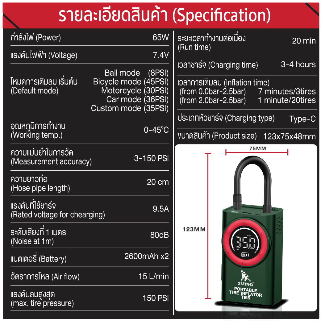 คุณกำลังรีวิว:เครื่องเติมลมไร้สายแบบพกพา รุ่น TI65