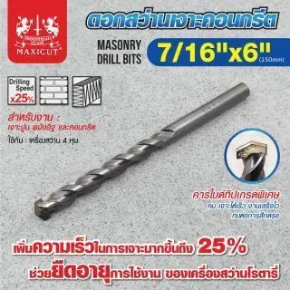 คุณกำลังรีวิว:ดอกสว่านเจาะปูน size : 1/4"x6" MAXICUT