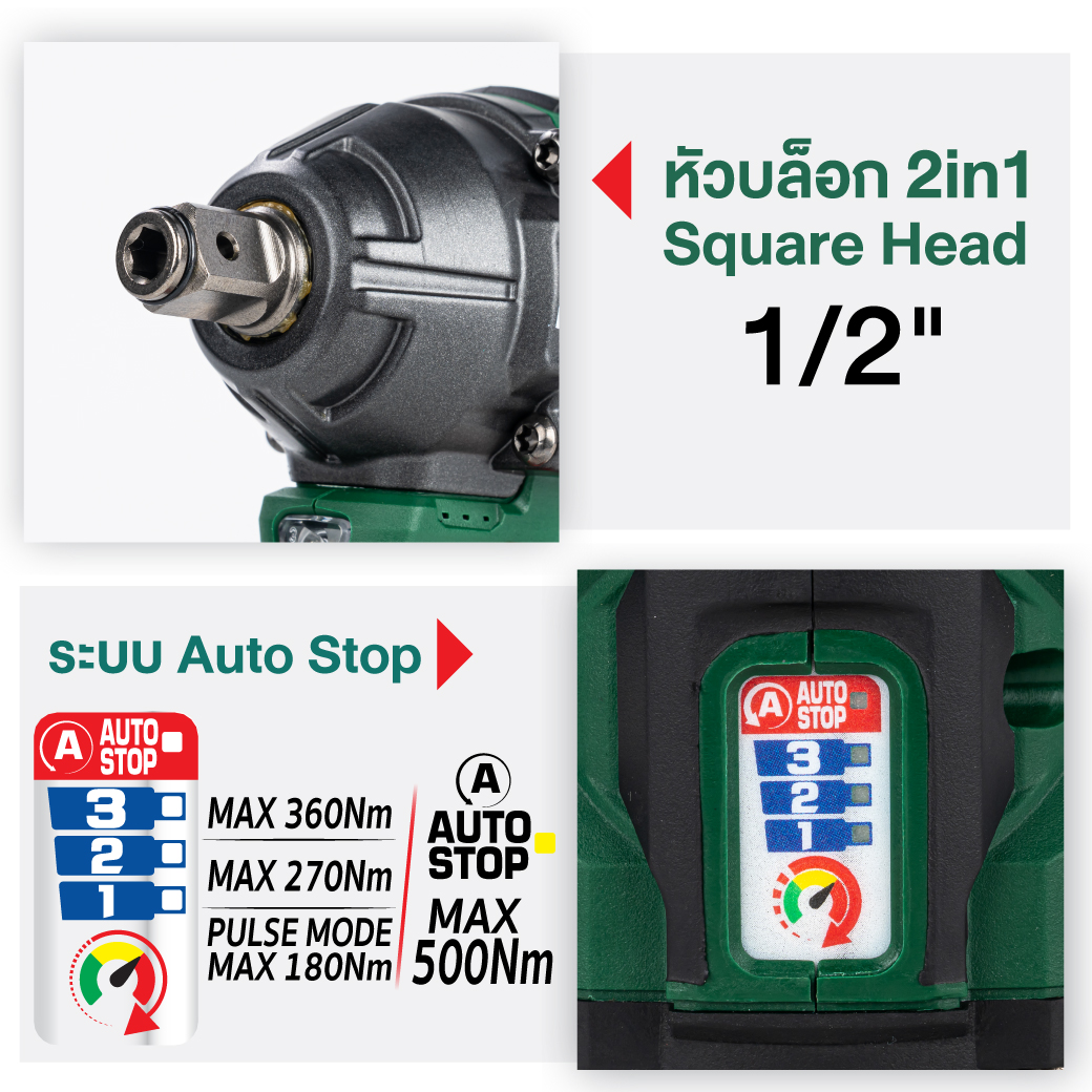โหมด Auto Stop หยุดอัตโนมัติเมื่อน็อตคลายพอดี ป้องกันการสึกหรอและชิ้นงานเสียหาย