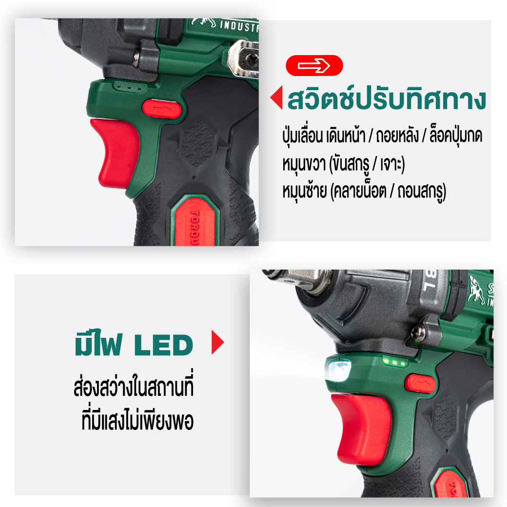 ตรวจสอบทิศทางการหมุนทุกครั้งก่อนใช้งานเครื่องมือ บล็อกกระแทกไร้สาย