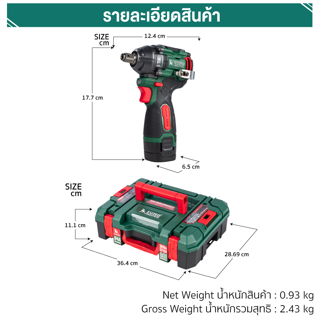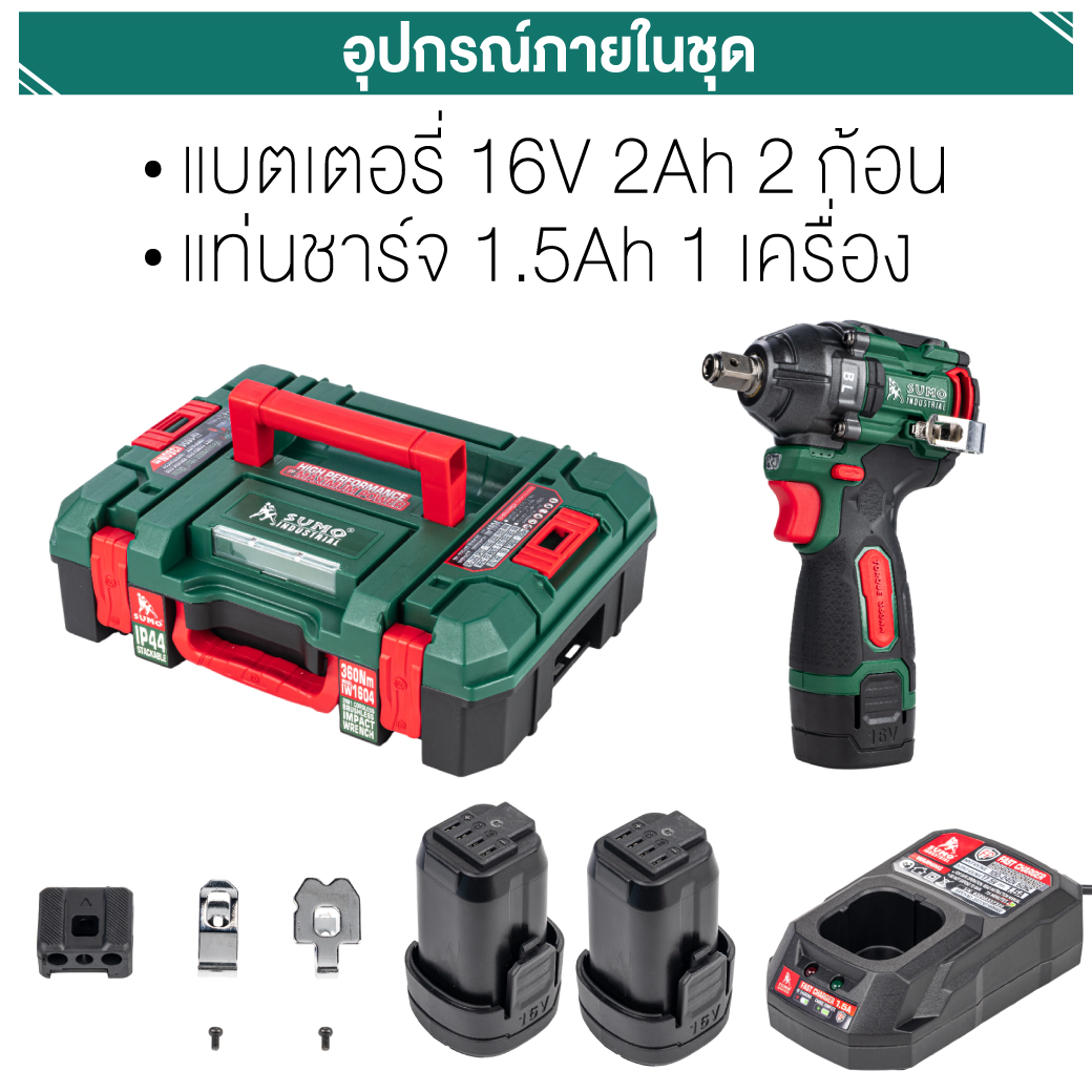 บล็อกไร้สาย 16V รุ่น IW1604 SUMO ทำงานด้วยมอเตอร์ทองแดงไร้แปรงถ่าน เฟืองเกียร์เกรดพรีเมียม แม่นยำ แรงเสียดทานต่ำ ทนแรงบิดได้สูง