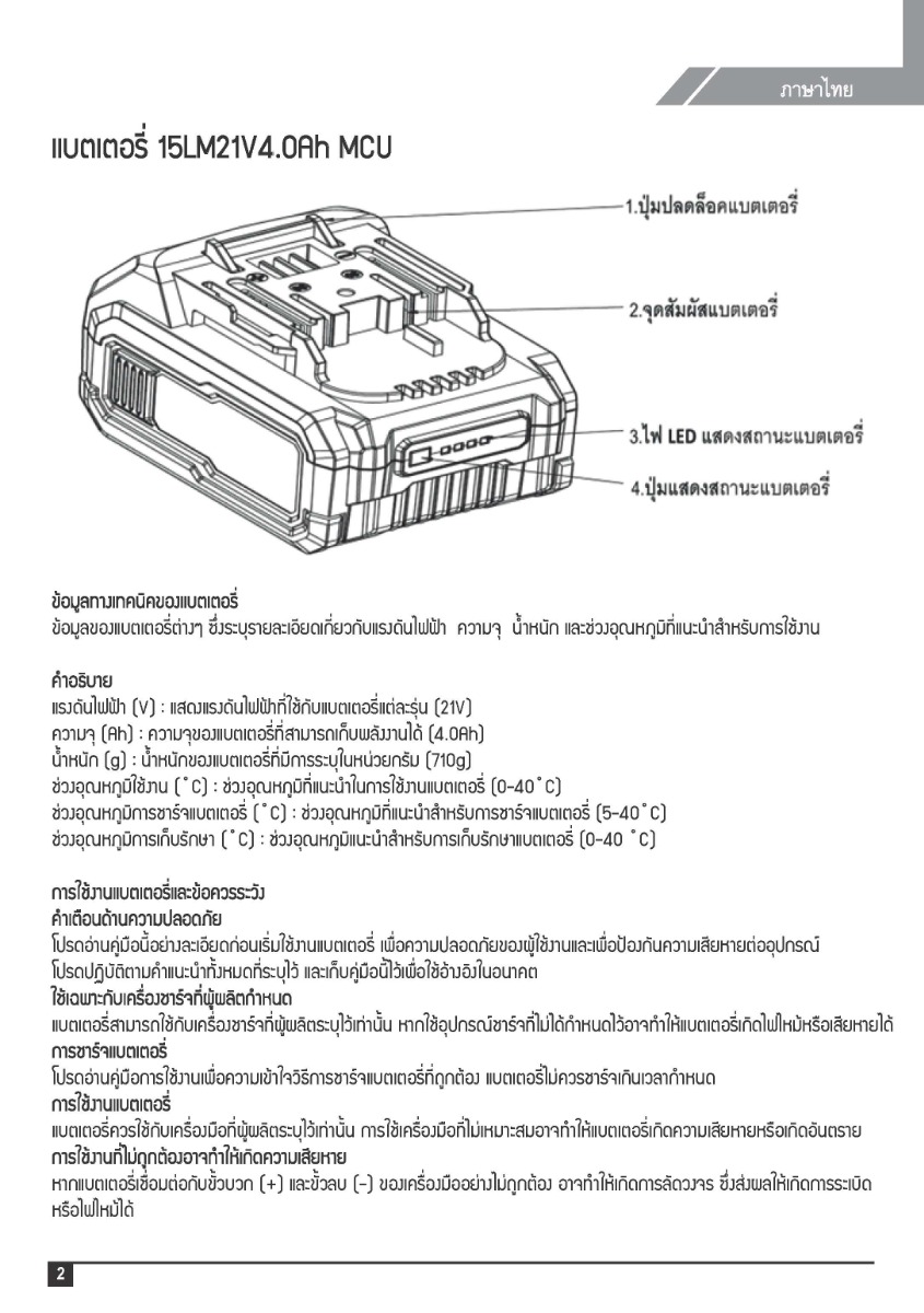 • ความจุ แบตเตอรี่ (BATTERY CAPACITY) : 4.0Ah