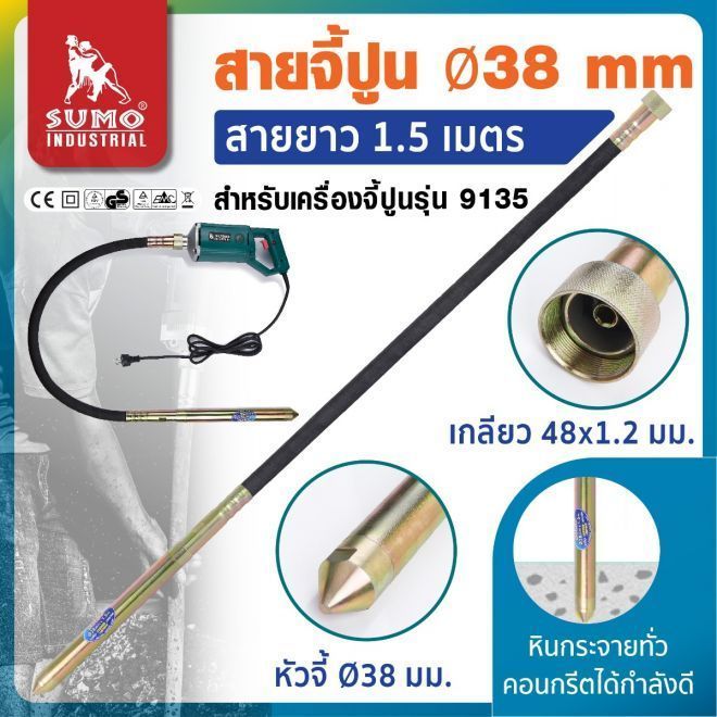 เครื่องจี้ปูนไฟฟ้ามือถือ รุ่น 9135 SUMO 1300W ขนาดหัวจี้ปูน Ø38 มม. เกลียว Ø48x1.2mm สายจี้ปูนยาว 1.5 ม.