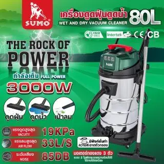 • เครื่องดูดฝุ่นดูดน้ำ 30 ลิตร SUMO มอเตอร์ทองแดงระบบ 2 ใบพัดกระจายความร้อนได้ดี ทำให้อายุการใช้งานยาวนานกว่า ใช้งานต่อเนื่องสูงสุด 600 ชั่วโมง