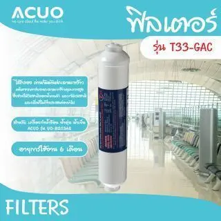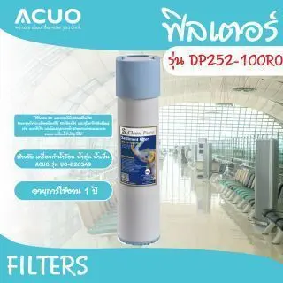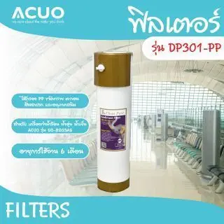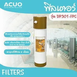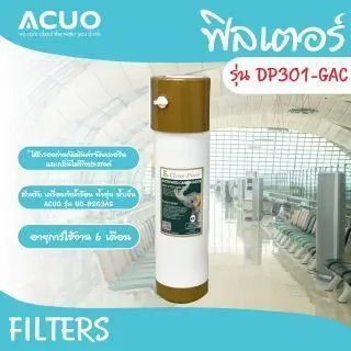 สนามบิน (Airport) สถานนีรถไฟ (Station) โรงพยาบาล (Hospital) งานแสดงนิทรรศการ (Exhibition) โรงเรียน (School) สำนักงาน (Office) โรงงาน (Factory) ห้องอาหาร (Restaurant) รายละเอียดไส้กรองแต่ละขั้นตอน Picture Name Thai ฟิลเตอร์ รุ่น DP301-PP ฟิลเตอร์ รุ่น DP301-GAC ฟิลเตอร์ รุ่น DP301-FPC ฟิลเตอร์ รุ่น DP252-100RO ฟิลเตอร์ รุ่น T33-GAC ไส้กรอง PP กรองได้ 5 ไมครอน ขจัดทราย ตะกอน สิ่งสกปรก และอนุภาคสนิม 5 micron PP filter effectively filter out mud, sand, rust and other particles and sediments. ไส้กรอง ถ่านกัมมันต์ขจัดคลอรีนและกลิ่นไม่พึงประสงค์ water-washed coconut carbon removes chlorine and odor. ไส้กรอง ตัวกรองคอมโพสิตขจัดคลอรีน กลิ่น และอนุภาคต่าง ๆ activated carbon filter removes color, odor and extracts chemicals such as chloride, pesticides and heavy metals from the water ไส้กรอง RO กรองได้ 0.001 ไมครอนเมมเบรนรีเวิร์สออสไมซิสสามารถกำจัดเกลืออนินทรีย์ สารอินทรีย์และจุลินทรีย์ส่วนใหญ่ เช่นแบคทีเรียและโมเลกุลของน้ำ สามารถผ่านเมมเบรนจนกลายเป็นน้ำที่บริสุทธิ์ได้ 0.0001 micron filters out virus, germs, toxics and heavy metals such as mercury, cadmium… etc, providing clean and safe drinking water ไส้กรอง ถ่านกัมมันต์กะลามะพร้าวผลิตจากคาร์บอนกะลามะพร้าวคุณภาพสูง ซึ่งช่วยให้รสชาติของน้ำคงตัวและขจัดรสชาติและกลิ่นที่ไม่พึ่งประสงค์ออกไป for the final polishing of water in reverse osmosis system, to remove unpleasant taste and odors from the water stored in tank, to produce cleaner, clearer, better tasting water.
