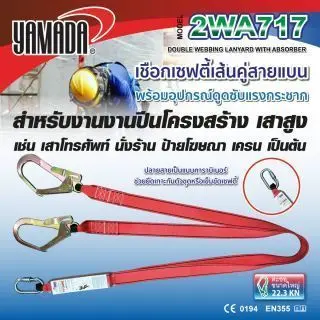 เชือกเซฟตี้เส้นคู่ สายแบน รุ่น 2WA717R YAMADA พร้อมอุปกรณ์ดูดซับแรงกระชาก