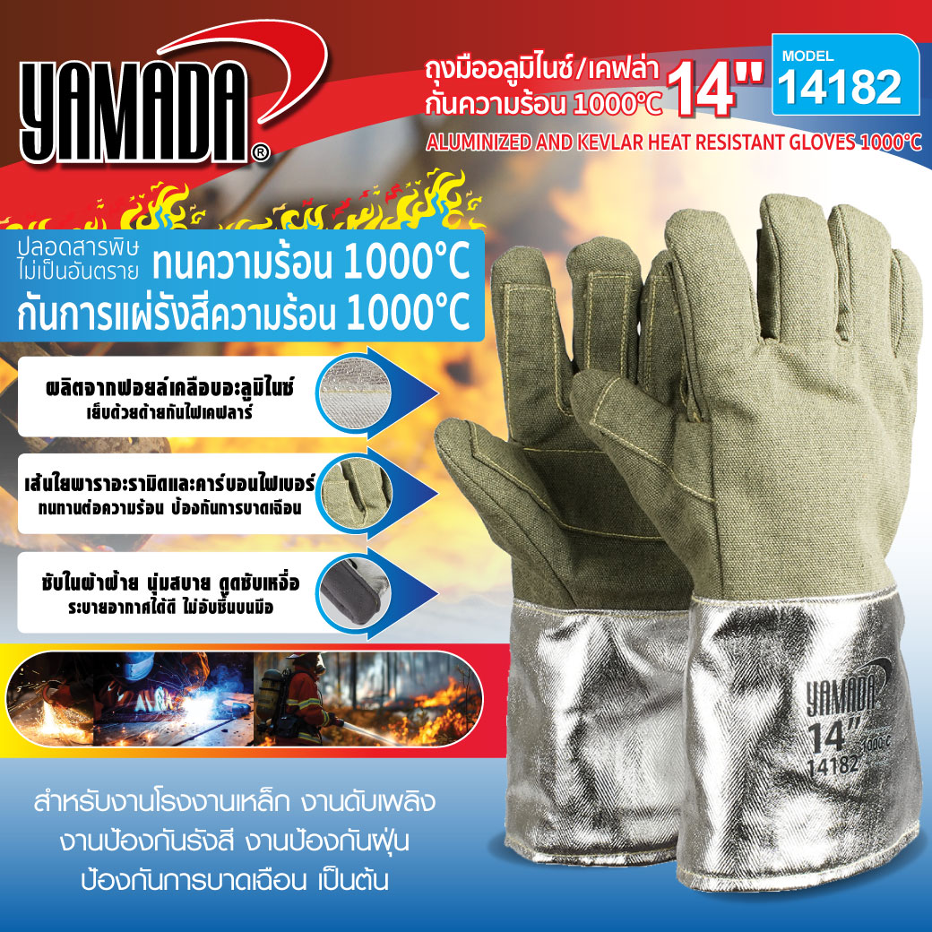 ถุงมืออลูมิไนซ์/เคฟล่ากันความร้อน 1000 องศา 14" กันความร้อนได้สูงสุดถึง 1,000°C
