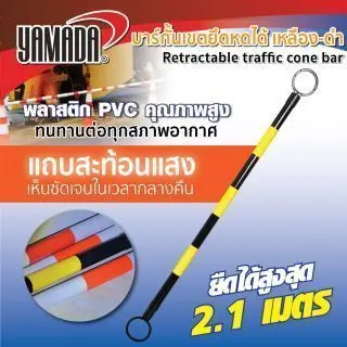ไม้กั้นกรวยจราจร ขาวแดง YAMADA แบบยืดหดได้ ผลิตจากวัสดุ PVC แข็งแรงทนทาน แถบขาวแดงสะท้อนแสงได้ดีแม้กลางคืน