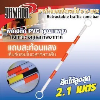 • บาร์กั้นกรวยจราจร YAMADA ผลิตจาก PVC แข็งทนทาน น้ำหนักเบา