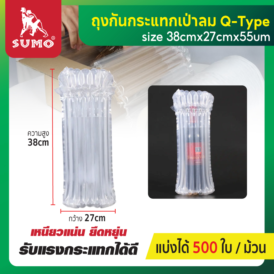 ถุงกันกระแทก Q-Type ครอบปิดป้องกันสินค้าได้รอบด้าน ทำจากพลาสติก PE ผสมไนลอน เหนียวแน่น ยืดหยุ่น รับแรงกระแทกได้ดี รับน้ำหนักได้มากถึง 80 กก.
