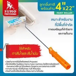 รายละเอียดสินค้า ลูกกลิ้งทาสี 10 นิ้ว พร้อมด้ามจับ 15 นิ้ว SUMO