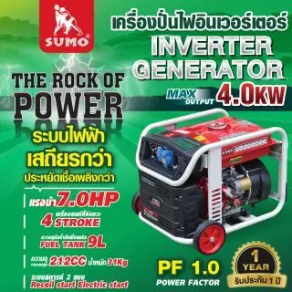 เครื่องปั่นไฟอินเวอร์เตอร์ 2.5kW SUMO แรงดันไฟ 220V ระบบไฟฟ้าเสถียรกว่า ประหยัดเชื้อเพลิงกว่า