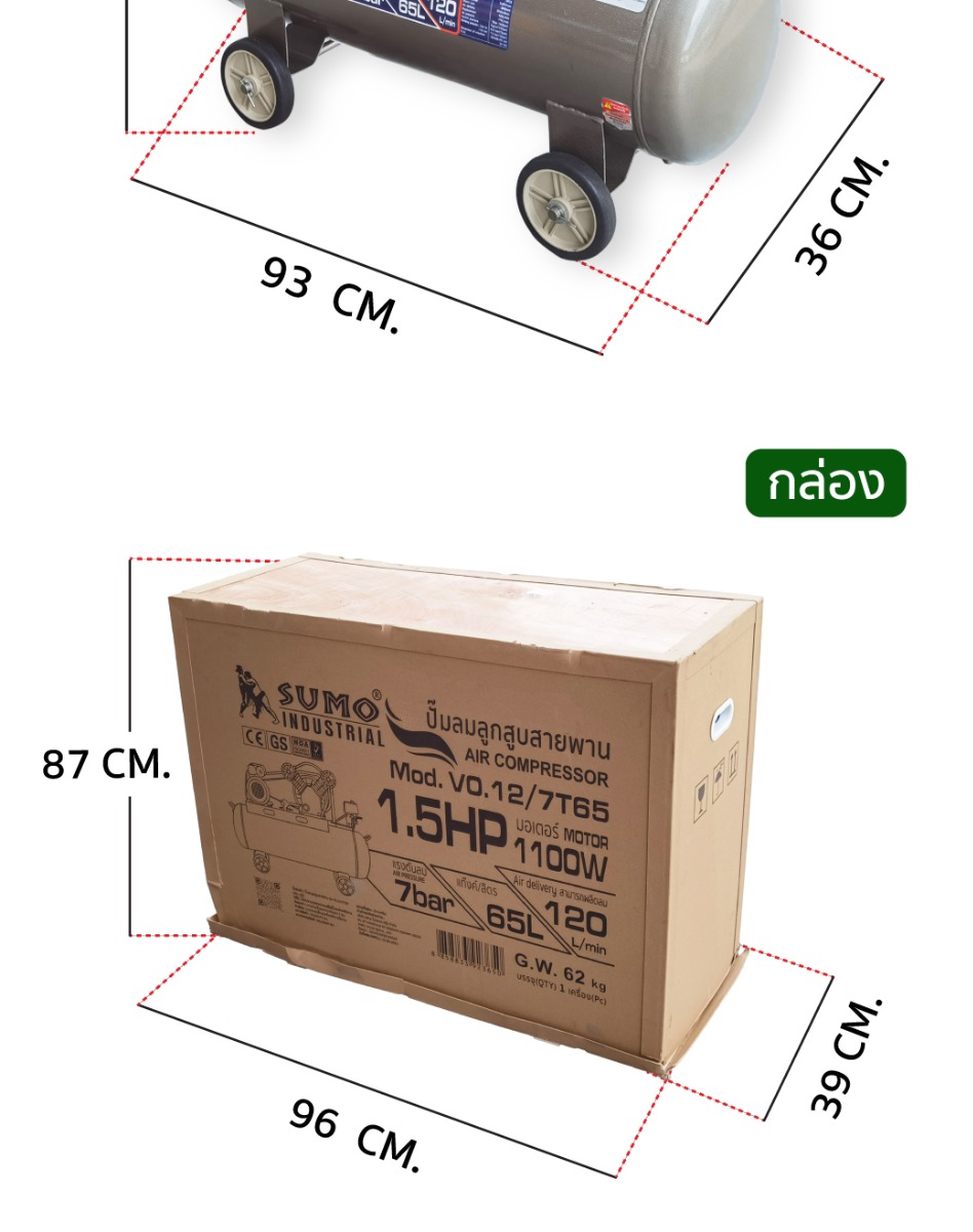 คุณกำลังรีวิว:ปั๊มลม 1.5 HP (65L) รุ่น V0.12/7T65 SUMO