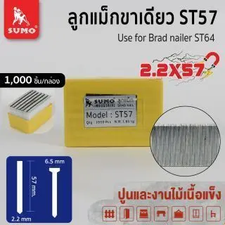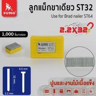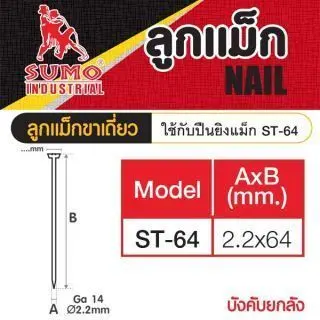 • ปืนยิงแม็ก ST64 หัวปืนเป็นแบบขาเดี่ยว ใช้กับลูกแม็ก ST และลูกแม็ก WT ขนาดตะปูหัว 6.5 mm. ความยาว 18-64 mm. แกนกลาง 2.2 mm