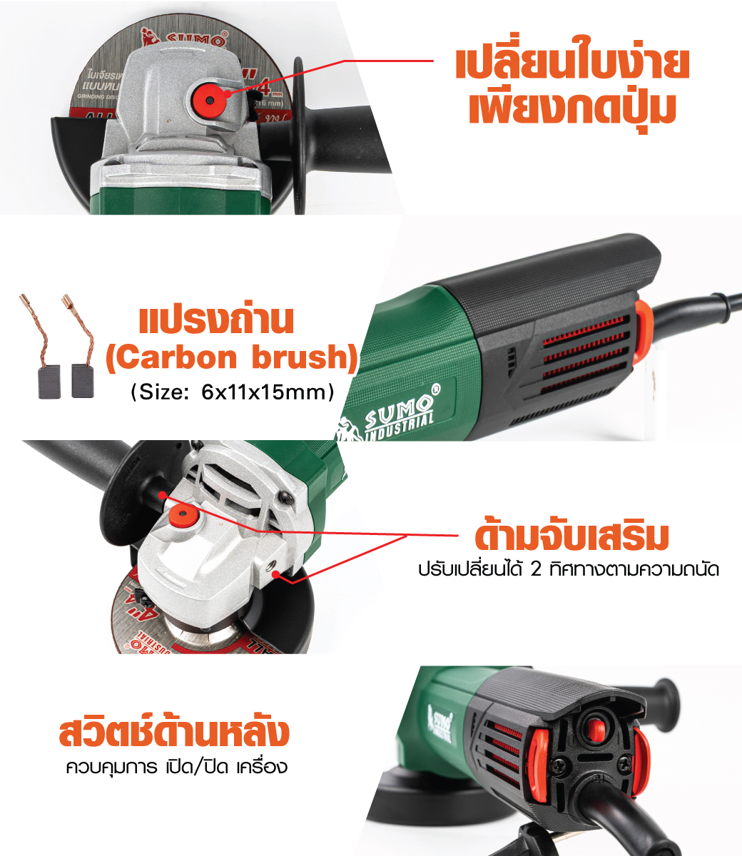 • เครื่องเจียร 4 นิ้ว 850W รุ่น Super Slim SUMO เหมาะสำหรับงานเจียรตกแต่ง ขัดผิว และตัดชิ้นงาน