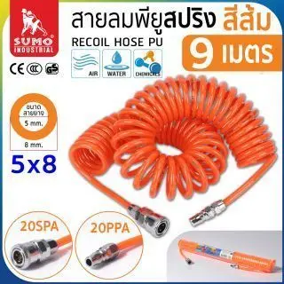 • สายลมพียูใหม่ 100% แบบสปริงพร้อมหัว Coupler พร้อมใช้งาน