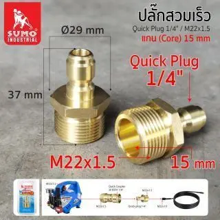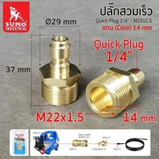 Buy ปลั๊กสวมเร็ว 1/4"/M22x1.5 แกน 14 มม. SUMO ปลั๊กสวมเร็ว 1/4" เป็นฟังก์ชั่นเสริม เปลี่ยนข้อต่อเกลียว เป็นปลั๊กสวมเร็วเพื่อความสะดวกในการใช้งา ปลั๊กสวมเร็ว : 1/4" ข้อต่อทางออกตัวผู้ : M22x1.5 (Core 14mm.) แรงดันสูงสุด : 350bar อุณหภูมิ สูงสุด : 60°C