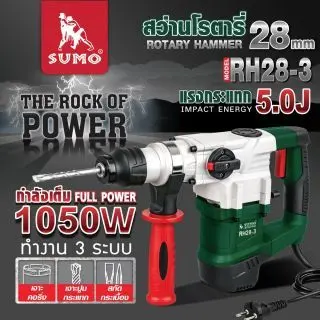 • สว่านไฟฟ้าโรตารี่ 4 ระบบ รุ่น RH32-6 SUMO ความแรงในการกระแทก 5 จูล เหมาะสำหรับงานเจาะเหล็ก เจาะไม้ที่ต้องการคุณภาพในการเจาะสูง  งานซ่อมแซมอาคารห้องเช่า อาคารพาณิชย์ งานรื้อถอนพื้นกระเบื้อง  พื้นปูน พื้นคอนกรีต งานเจาะผนังเดินท่อน้ำ ฯลฯ
