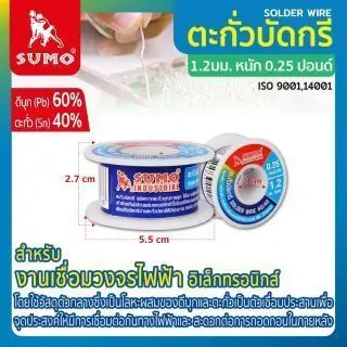 • ตะกั่วบัดกรี 60/40 SUMO (ส่วนผสมดีบุก 60% และตะกั่ว 40%) ขนาด 1 มม.