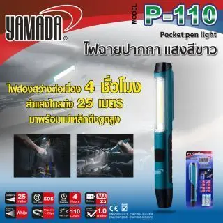 - ไฟฉาย (แสงสีขาว): สวิตซ์ 4 จังหวะ สูง >> ต่ำ >> ไฟกระพริบ >> ปิด