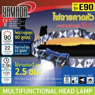 • ใช้งานต่อเนื่อง 4 ชั่วโมง (ที่ค่าความสว่างสูงสุด 110 lumens)