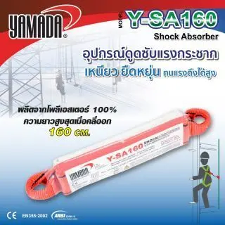 • อุปกรณ์ดูดซับแรงกระชาก รุ่น Y-SA120 YAMADA ความยาว 120 ซม. เหมาะกับการทำงานบนที่สูงที่ต้องใช้ระบบความปลอดภัยกันตกส่วนบุคคล เช่น งานก่อสร้างบนตึกสูง งานเช็ดกระจกตึก งานซ่อมแซมหลังคา งานดับเพลิง งานไฟฟ้า งานกู้ภัย และงานอื่นๆ ที่ต้องขึ้นไปอยู่บนที่สูง